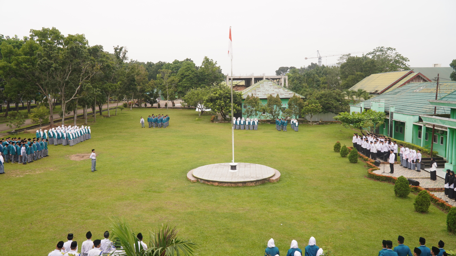 MAN Insan Cendekia Jambi, 8 Desember 2025, melaksanakan upacara bendera dengan petugas dari kelas X-4. Kegiatan rutin mingguan ini berlangsung tertib dan penuh khidmat di lapangan utama madrasah. Seluruh siswa, guru, dan tenaga kependidikan mengikuti rangkaian upacara dengan disiplin sejak awal hingga akhir. Cuaca yang cerah turut mendukung kelancaran dan kekhidmatan jalannya upacara.